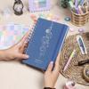 Şık kumaş kapak tasarımı ve altın yaldız baskısıyla sadece işlevsel değil, aynı zamanda estetik bir görünüm sunar. Dayanıklı spiralli yapısıyla her yerde rahatça açıp kullanabilir, notlarını güvenle tutabilirsin.