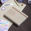 Şık vegan deri kapak tasarımı ve bakır yaldız baskısıyla sadece işlevsel değil, aynı zamanda estetik bir görünüm sunar. Dayanıklı spiralli yapısıyla her yerde rahatça açıp kullanabilir, notlarını güvenle tutabilirsin.