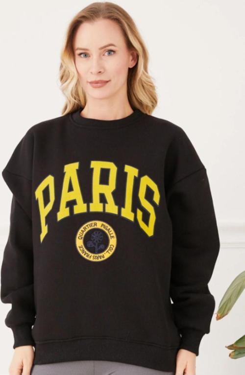 - Paris baskısı ile şıklığı ve rahatlığı bir arada sunan kadın sweatshirt, günlük kullanım için idealdir.