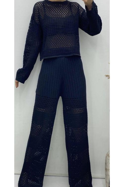 Abba Kadın Yazlık Delikli Alt Üst Takım Triko Siyah