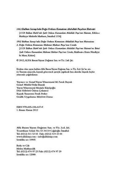 'Osmanlı ordusu mağlup olmuşsa bu felaketin gerçek sebepleri araştırılıp incelenmedikçe, bütün milletin seçkin ahlâkının iflas ettiğini söylemek doğru değildir. Özellikle bizimle silâh arkadaşlığı yapalı henüz yarım asır geçmiş milletlerin, bu kadar hızlı bir şekilde fikir değiştirmeleri hayret edilecek bir şeydir. Bu konuda karar verebilmek için mağlubiyetimizin sebeplerini araştırmak şarttır. Bu savaşa Şark Ordusu Kumandanı [Doğu Ordusu Komutanı] sıfatıyla katılmış olmam nedeniyle derlediğim bu hatırat, herkesten çok benim için üzüntü vericidir.'