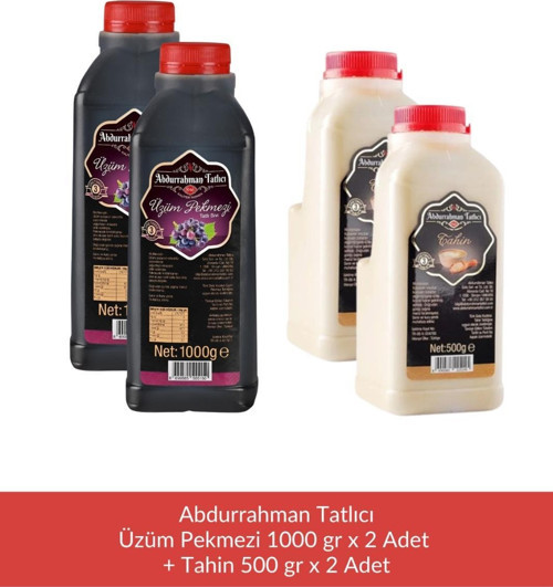 Abdurrahman Tatlıcı Üzüm Pekmezi 1000 g x 2 Adet + Abdurrahman Tatlıcı Tahin 500 gr x 2 Adet