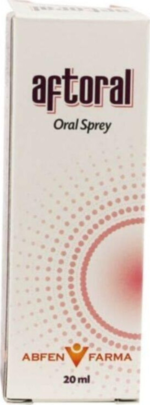 Aftoral oral sprey 20 ml Dilde, yumuşak damakta, dudak ve yanakların iç kısımlarında, farenkste ve diş eti üzerinde görülen küçük, yüzeysel, solgun sarı/beyaz renkli, etrafı kırmızı ülserlere aft denir.