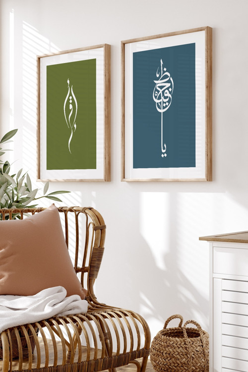 Acar Grafik Dini Tasarımlı 2'Li Doğal Ahşap Çerçeveli Tablo