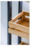 Vika tekerlekli raf, doğal bambu raflar ve siyah mdf iskeletle banyolara modern bir dokunuş getiriyor. Üç katlı geniş saklama alanı sayesinde havlulardan temizlik malzemelerine, kozmetiklerden banyo aksesuarlarına kadar her şeyi düzenli tutar.