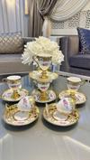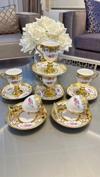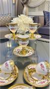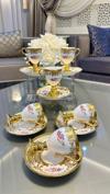 Gold renk detayları, fincan takımına sofistike bir görünüm kazandırır.