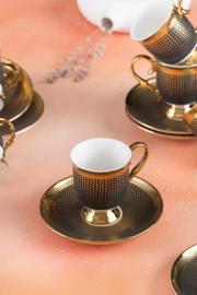 v Sevdiklerinizle beraber hoş sohbetinizi yaparken keyifle yudumladığınız taze, bol köpüklü türk kahve sunumunuzu Nova Gold 6'lı Porselen Kahve Fincan Takımı ile renklendirin.