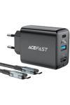 Acefast Akıllı Şarj Cihazı Usb-C - 60W + Usb-A - 5W + Medya Bağlantı Noktası 4K / 60Hz Pd65W Siyah Renk A17