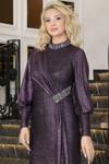 Esilanur Açelya Sarkaçlı Taşlı Tesettür Abiye Mor