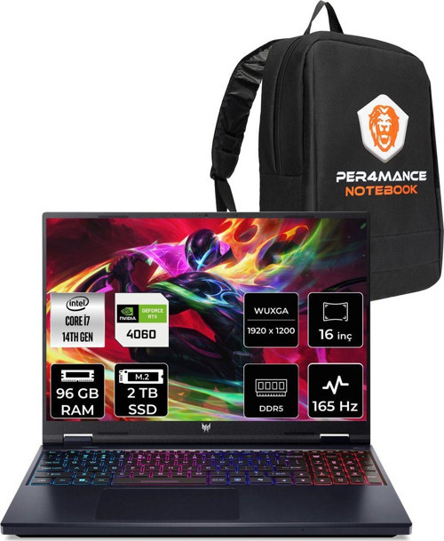 Acer Predator Helios Neo 16 i7 14650HX 96GB 2TB SSD RTX4060/8GB 140W 16'' WUXGA FDOS Gaming Laptop