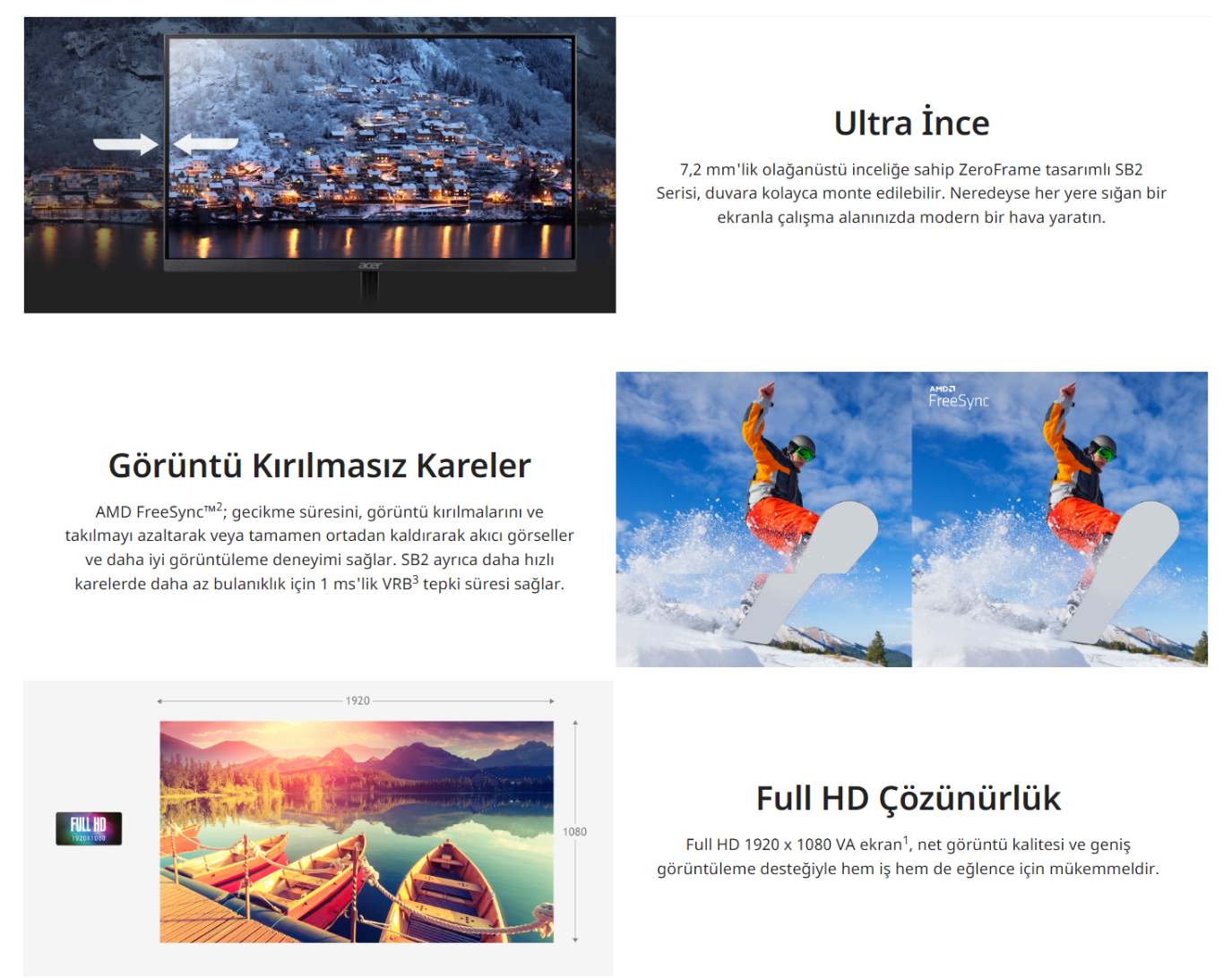 ACER SB242Y E 23.8 inç FHD 100Hz 1ms IPS Monitör