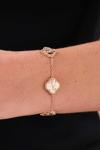 Aşkın ve zarafetin simgesi olan bu bileklik Yonca detayı ile dikkat çekiyor ve romantik bir dokunuş sağlar.