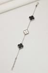 Acestes Design 925 Ayar Gümüş Yonca Şans 3 Motifli Model Siyah Taşlı Ve Kalemli Tasarım Rodaj Gümüş Bileklik
