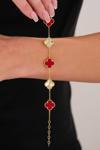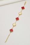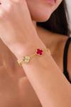 Acestes Design 925 Ayar Gümüş Yonca Şans Model 5 Motifli Kırmızı Renk Taşlı Kalemli Gold Tasarım Gümüş Bileklik