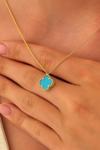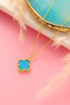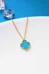 Acestes Design 925 Ayar Gümüş Yonca Şans Model Turkuaz Renk Taşlı Tasarım 14 Ayar Altın Kaplama Kolyeler