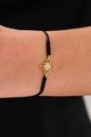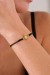 Acestes Design Prenses Çiçeği Tasarım Mikro Zirkon Taşlı İthal Paraşüt Siyah Renk Altın Kaplama İp Gümüş Bileklik