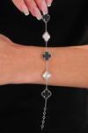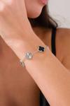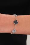 Acestes Design Şans Yonca Model 5 Model Siyah Renk Taşlı Ve Lazer Kalemli Zarif Ve Şık Tasarım Gümüş Bileklik
