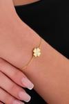 Acestes Design Yonca 4 Yapraklı Şans Model Lazer Kalemli Işıltılı Ve Zarif Özel Seri Altın Kaplama Gümüş Bileklik