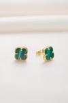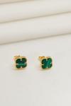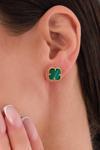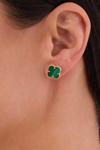 Acestes Design Yonca Şans Çiçeği Şık Ve Zarif Tasarım Malakit Yeşil Renk Doğal Taş 14 Ayar Altın Kaplama Küpeler
