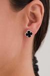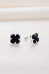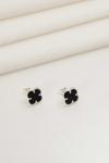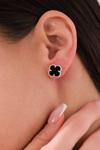 925 Ayar Gümüş Işıltılı Yonca Şans Çiçeği Şık ve Zarif Tasarım Siyah Oniks Renk Taş 14 Ayar Altın Kaplama Küpeler