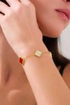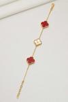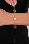 Acestes Design Yonca Şans Model 3 Motifli Kırmızı Renk Taşlı Ve Kalemli Gold Altın Kaplama Gümüş Bileklik