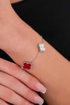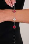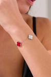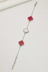 Acestes Design Yonca Şans Model 3 Motifli Kırmızı Renk Taşlı Ve Lazer Kalemli Rodaj Kaplama Tasarım Gümüş Bileklik
