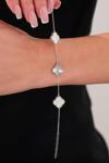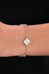 Acestes Design Yonca Şans Model 3 Motifli Sedef Beyaz Taşlı Ve Kalemli Şık Tasarım Gold (14Mm) Gümüş Bileklik