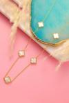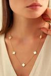 Acestes Design Yonca Şans Model 5 Desenli Tasarım Beyaz Sedef Renk Taşlı 14 Ayar Altın Kaplama 925 Ayar Kolyeler