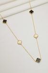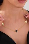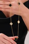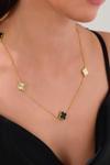 925 Ayar Gümüş Yonca Şans Model 5 Motifli Siyah Oniks Renk Taşlı Lazer Kalemli Şık & Zarif Tasarım Gold Kolyeler .
