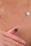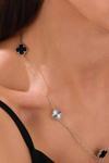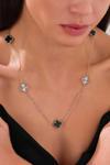 925 Ayar Gümüş Yonca Şans Model 5 Motifli Siyah Oniks Renk Taşlı Lazer Kalemli Şık & Zarif Tasarım Gold Kolyeler Yoncalar 14 mm ölçüsündedir.
