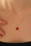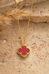 yonca şans Kırmızı renk taşlı Kolyeler Kolye ucu 10 mm ölçüsündedir