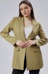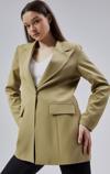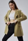 Bolivente Açık Haki Kruvaze Uzun Blazer Ceket