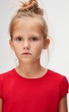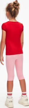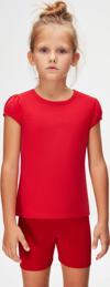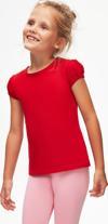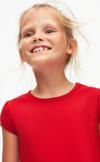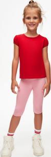 Açık Kırmızı Basic Kız Çocuk Sıfır Yaka Karpuz Kol Tişört
