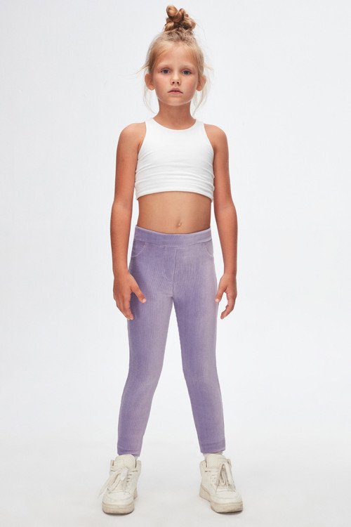 Açık Lila Kız Çocuk Cepli Fitilli Kadife Tayt