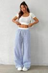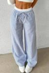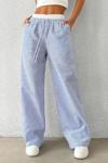 Açık Mavi Beyaz Çizgili Yüksek Bel Rahat Kesim Pantolon