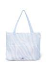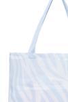 Açık mavi beyaz desenli file plaj çantası, yaz aylarında plaj şıklığınızı tamamlar.