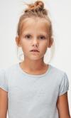 Gri Basic Kız Çocuk Sıfır Yaka Karpuz Kol Tişört - Image 1
