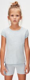 Açık Mavi Melanj Basic Kız Çocuk Sıfır Yaka Karpuz Kol Tişört