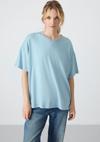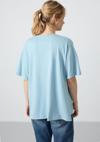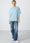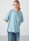 Açık Mavi Penye Modal Yumuşak Tuşeli Oversize Fit Basic Kadın T-Shirt- 97285