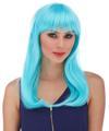 Açık Mavi Renk Uzun Düz Parti Peruğu