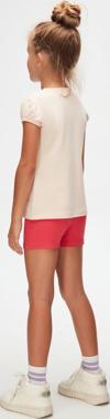 Açık Pudra Basic Kız Çocuk Sıfır Yaka Karpuz Kol Tişört