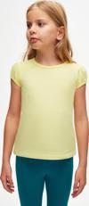 Açık Sarı Basic Kız Çocuk Sıfır Yaka Karpuz Kol Tişört - Image 1