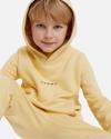 Yumuşak dokusu ve konforlu kalıbıyla öne çıkan bu açık sarı kapüşonlu eşofman takımı, çocukların günlük yaşamda hem rahat hem de şık görünmesini sağlar. %100 pamuklu 3 iplik kumaşı sayesinde nefes alabilir ve dayanıklıdır.