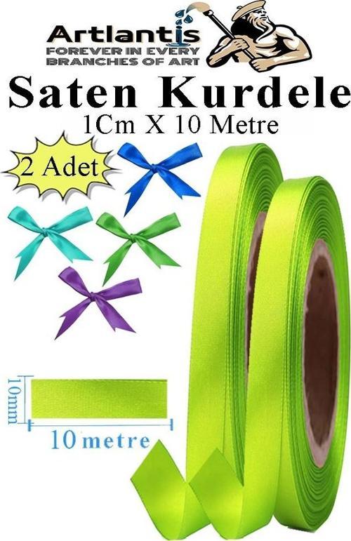 Artlantis Açık Yeşil Kurdele Saten 1 Cm 10 Metre 2 Adet Saten Kurdela Parlak Hediye ve Süsleme Şeridi Süs Paketleme Çiçek Saç El