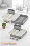 Açılır-Kapanır Bulaşıklık - Bulaşık Durulama Sepeti Tabaklık Bulaşık Kurutmalık GRİ