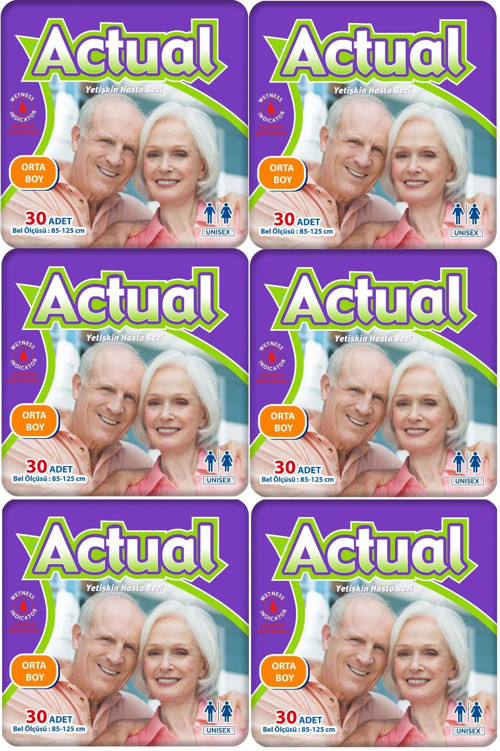 Actual Yetişkin Hasta Bezi Bel Bantlı M - Medium - Orta 180 Adet (6PK*30)