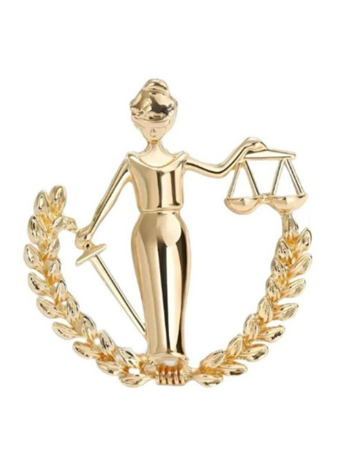 Adalet ve hukuk sembolü olan Themis figüründen ilham alınarak tasarlanan bu şık broş, zarif ve anlamlı bir aksesuar olarak öne çıkar. Terazi tutan adalet figürü, hukukun dengesi ve tarafsızlığını simgeler. Altın tonlu metal tasarımı sayesinde klasik ve dikkat çekici bir görünüm sunar.
