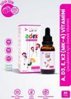 More Than Adek Kids Multivitamin Damla 30 ml;A, D3, E, K2 (MK-4) Vitamini;Kabak Çekirdeği Yağı İçeren Takviye Edici Gıda;Bileşen Adı;Miktar / 1 Damla;%BRD;A Vitamini;120 µg RE;15 %;D3 Vitamini;3.125 µg;62,5 %;E Vitamini;2 mg (a-TE);16,67 %;K2 Vitamini ;12 µg;16 %;% BRD(Beslenme Referans Değeri);İçindekiler: Kabak Çekirdeği Yağı, D- Alfa Tokoferol, Retinil Palmitat, Menaukinon 4, Kolekalsiferol;Kullanım Bilgisi: 4-10 yaş arası çocuklar ve 11 yaş ve üzeri yetişkinlerde günde 1 damla olarak tüketilir.;Alerjen Uyarısı:Kabak çekirdeği içerir.;Uyarılar:Tavsiye edilen günlük kullanım dozunu aşmayınız. Takviye edici gıdalar normal beslenmenin yerine geçemez. Hamilelik ve emzirme dönemi ile hastalık veya ilaç kullanılması durumlarında doktorunuza danışınız. Çocukların ulaşamayacağı yerde saklayınız.;Tavsiye edilen tüketim tarihi (TETT) ve parti numarası ambalaj üzerindedir.;Saklama Koşulları:Serin ve kuru yerde saklayınız.;*Kimyasal tatlandırıcı, gluten ve koruyucu içermez.