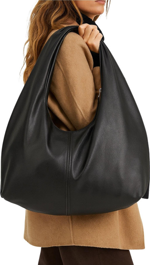 Siyah Salaş Büyük Boy Yumuşak Dokulu Shopper Kol ve Omuz Çantası