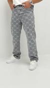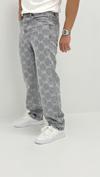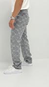 Aden Baggy Denim Açık Gri Lazer Detaylı Erkek Jean Pantolon